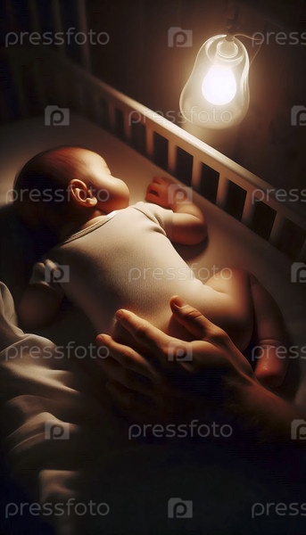 Нежный, личный момент родителя, успокаивающего ребенка посреди ночи, Ай создал изображение