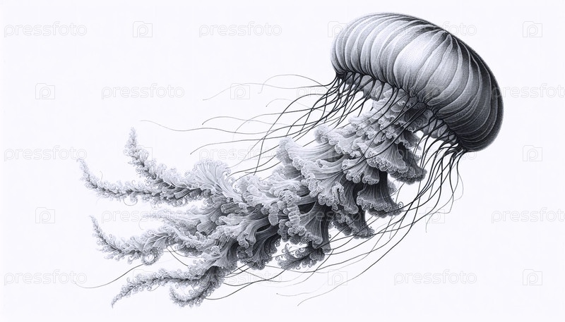 Дрейфинговая медуза чернила рисование художественная печать, Ai generated image