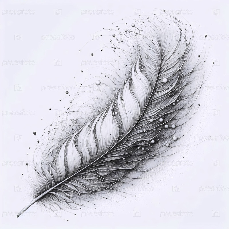 Перо растворяется в ветре чернила рисование искусства печать на черном, Ai generated image