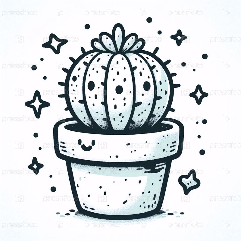 Крошечный дом растение в горшке чернил рисование художественная печать, Ai A generated image