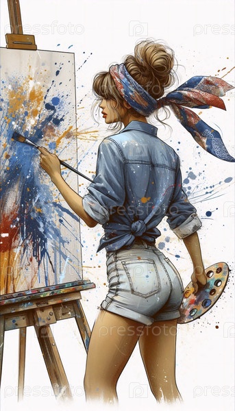 Девушка-художница, рисующая большое полотно с смелыми штрихами, Ai generated image