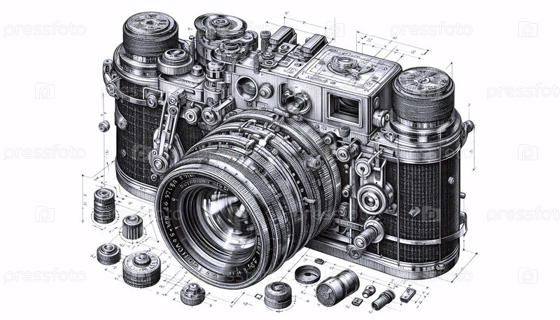 Vintage Камера чернила рисование художественная печать, Ai generated image