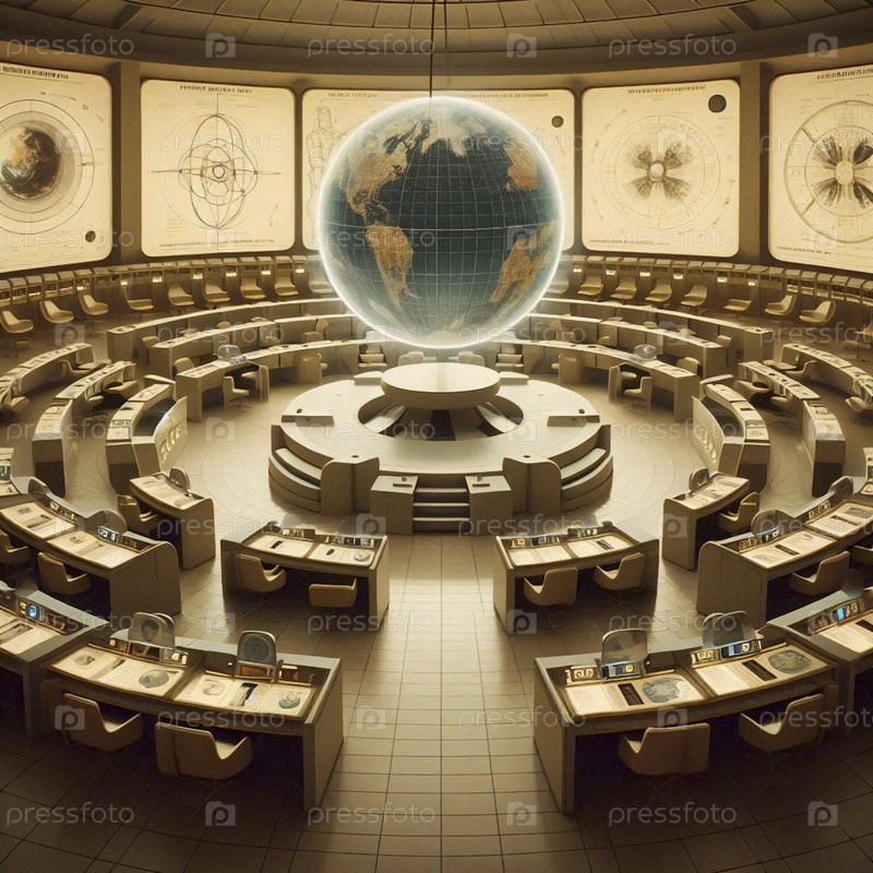 Классный класс будущего с индивидуальными модулями обучения и большим голографическим глобусом, Ai создал изображение
