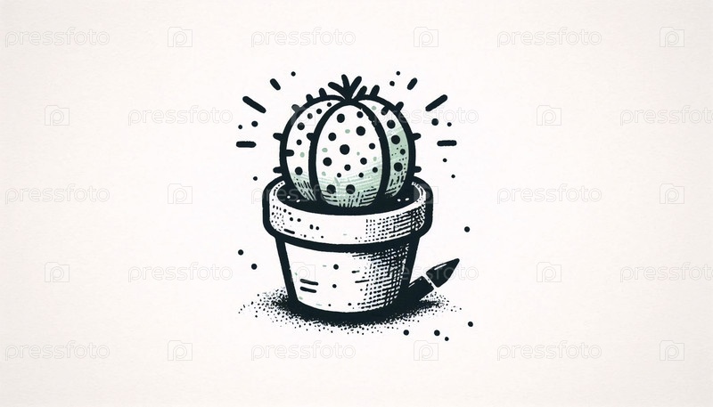 Крошечный дом растение в горшке чернил рисование художественная печать, Ai A generated image