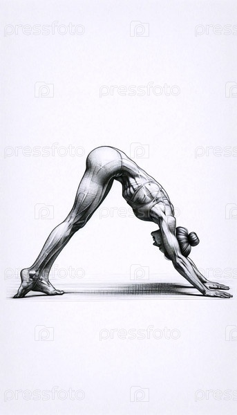 Сильная нисходящая собака позирует йоге Иллюстрация, Ai generated image