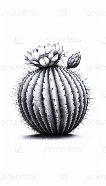 Whimsical Cactus A ink drawing art print, Ai generated image Аи создал изображение