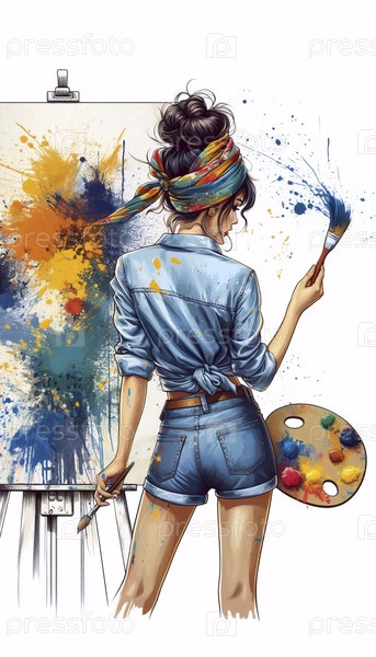 Девушка-художница, рисующая большое полотно с смелыми штрихами, Ai generated image