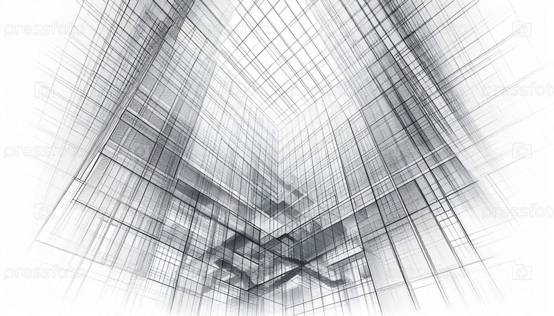 Модернистское стекло Атриум чернила A drawing ink art print, Ai generated image