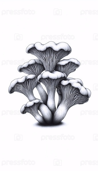 Chanterelle Family A ink drawing art print, Ai generated image Семья Шантерэлл чернила рисунок художественный печат, созданное изображение