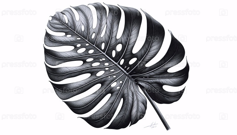 монстера листья чернила рисунок
