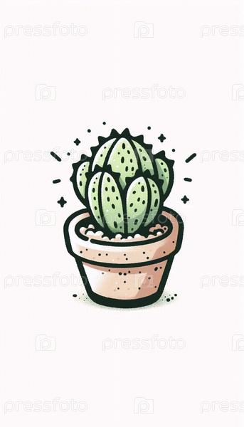 Крошечный дом растение в горшке чернил рисование художественная печать, Ai A generated image