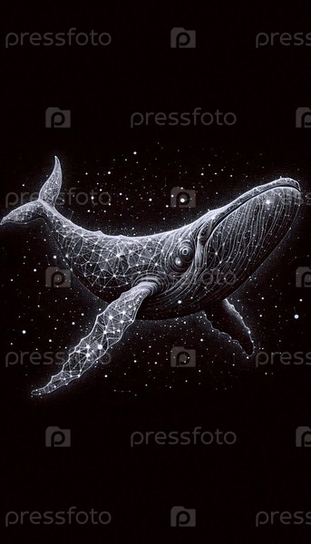Космический кит чернила рисование арт-принт, Ai generated image