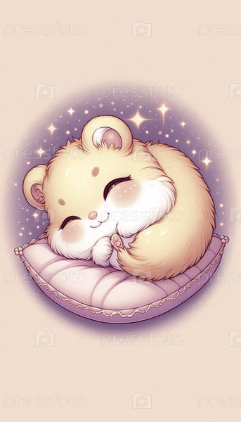 Подробная иллюстрация кавайи спящего хомстера, Ai generated image