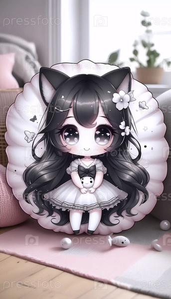 Подробная иллюстрация кавайской девочки с кошачьими ушами, Ai generated image