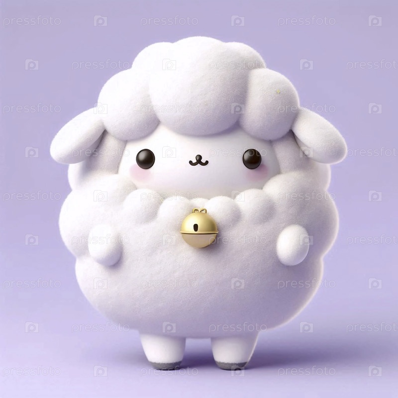 Простой кавайский персонаж овцы с колоколом, Ai generated image