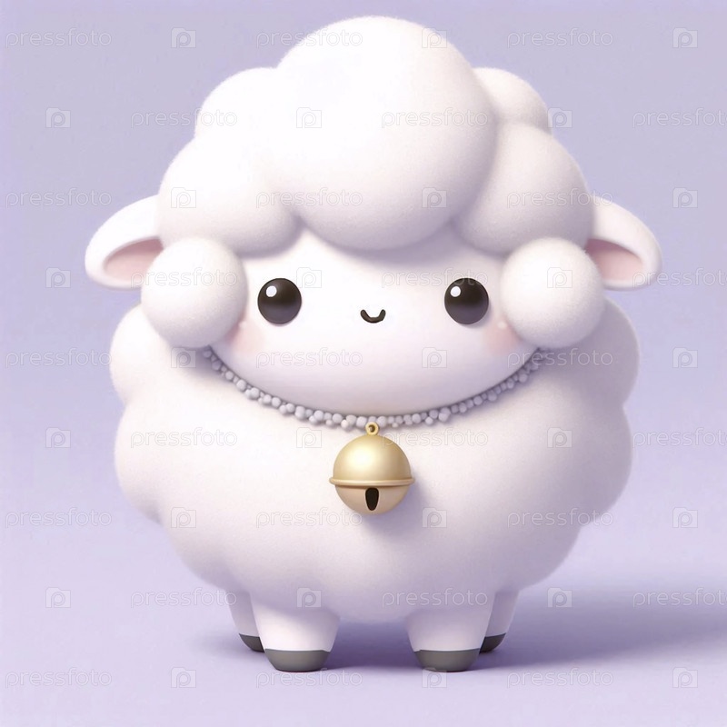 Простой кавайский персонаж овцы с колоколом, Ai generated image