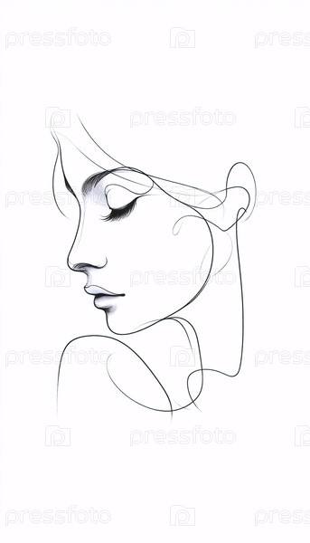 Стилизованный профиль Портрет чернила рисование искусство печати, Ai generated image