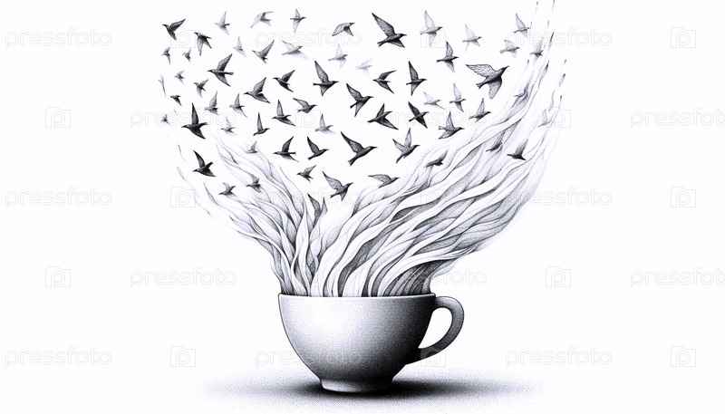 Чашка, выпускающая стадо чернил рисование арт-принтов в черном цвете, Ai generated image