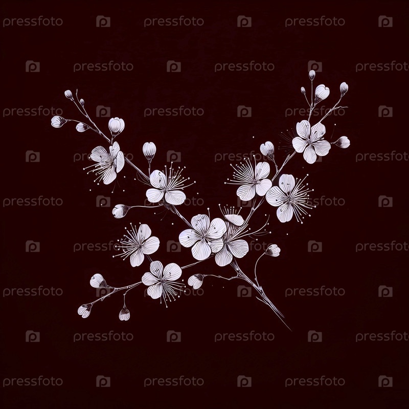 A Pair of Cherry Blossoms чернила рисунок художественного произведения печать на черном, Ai generated image