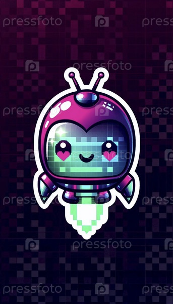 Милый стикер кавайи пиксельного робота-сердца, Ai generated image