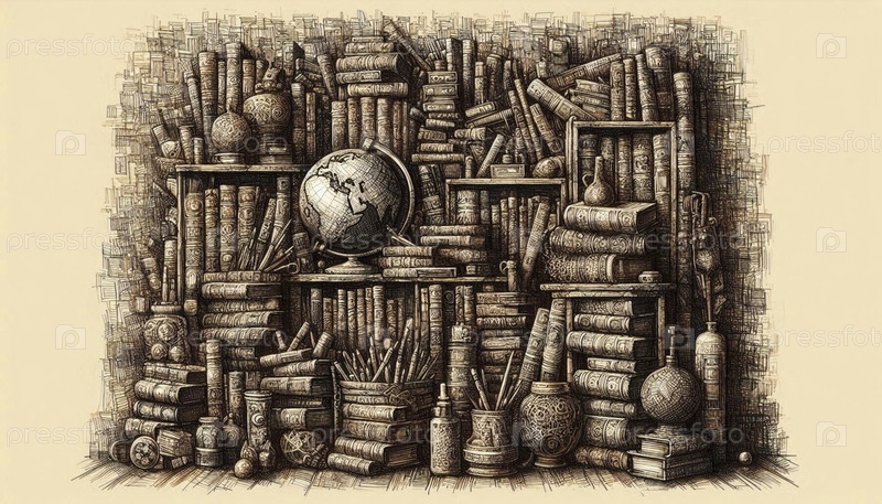 хаотическая книжная полка чернила рисунок