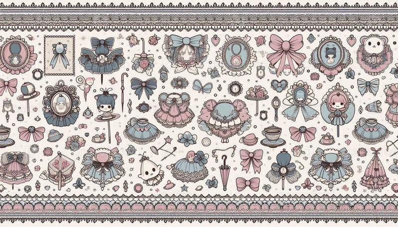 A kawaii pattern of lolita fashion elements, Ai generated image (кавайский шаблон модных элементов Лолиты), созданный Ай