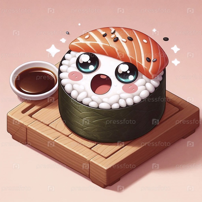 Подробная иллюстрация кавайи из удивленного свитка суши, Ai generated image