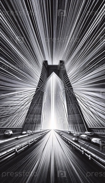 А Suspension Bridge Cable Detail ink drawing art print, Ai generated image Подвесный мост с кабелем Детали чернил рисование художественная печать, Ai создал изображение