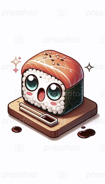 Подробная иллюстрация кавайи из удивленного свитка суши, Ai generated image