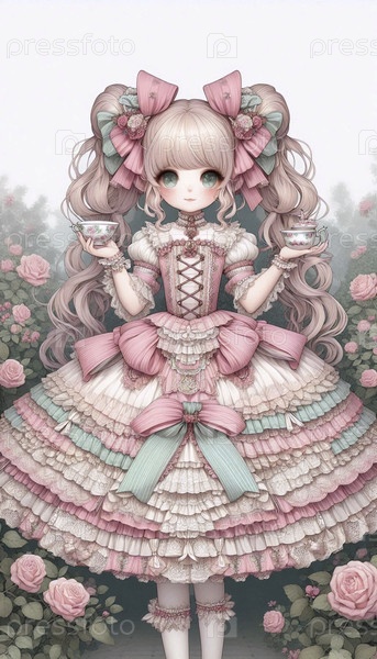 Подробная иллюстрация кавайи сладкой девочки, Ai generated image