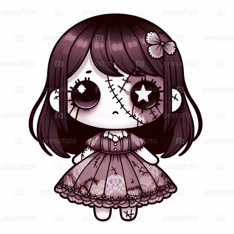 Милый стикер кавайи с разбитой куклой со швамами, Ai generated image