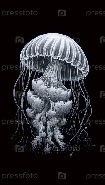 Дрейфинговая медуза чернила рисование художественная печать, Ai generated image