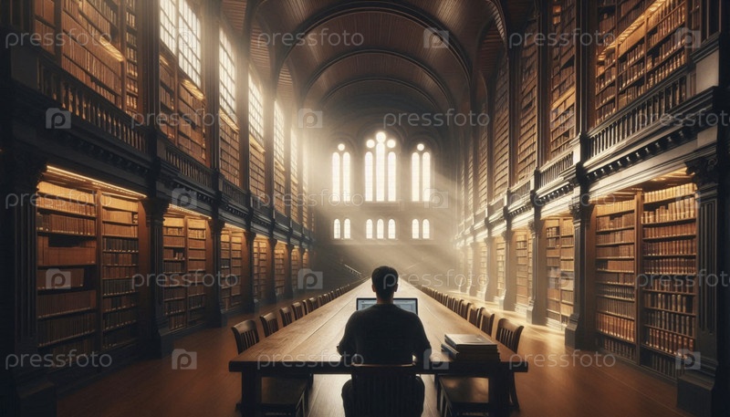 Офис фрилансеров днем в яркой солнечной публичной библиотеке Ai generated image