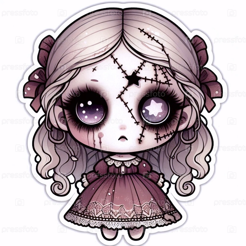 Милый стикер кавайи с разбитой куклой со швамами, Ai generated image