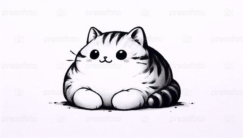 Кошка в хлебе Положи чернила на рисунок художественная печать, Ai generated image