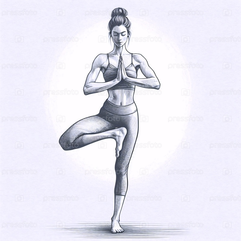 Вишневое дерево позирует йоге Иллюстрация, Ai создал изображение A