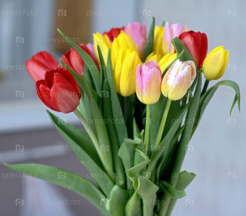 Букет разноцветных тюльпанов