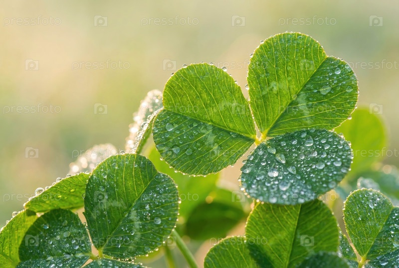 Утренний клевер в росе. Утро Дня Святого Патрика.Искусственный интеллект генерирует росу