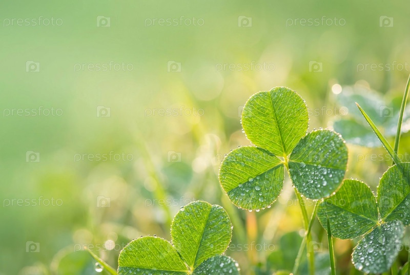 Поцелованная клевер.Утро Дня Святого Патрика.Искусственный интеллект генерирует росу