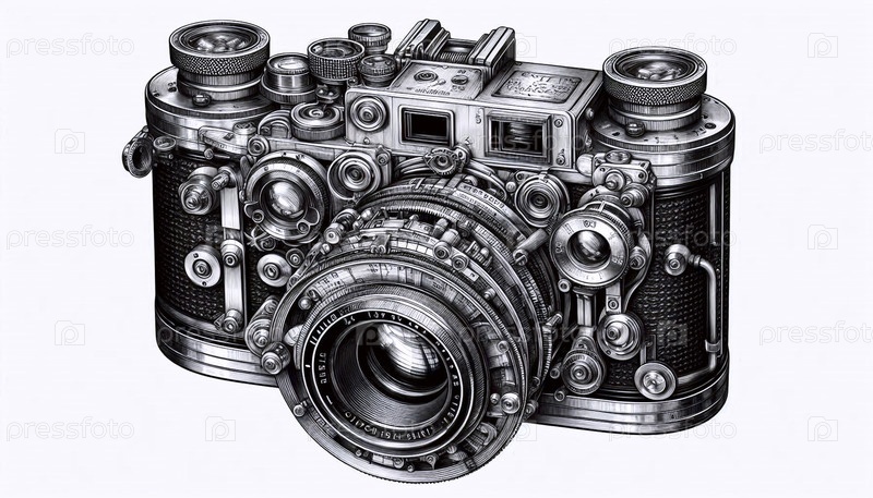 Vintage Камера чернила рисование художественная печать, Ai generated image