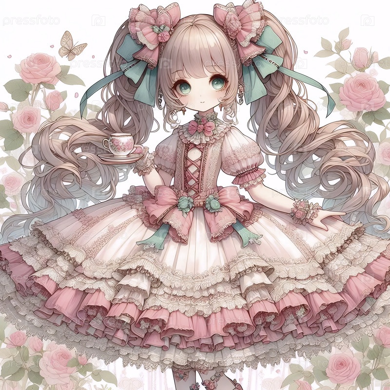 Подробная иллюстрация кавайи сладкой девочки, Ai generated image