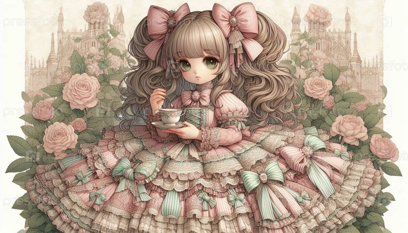 Подробная иллюстрация кавайи сладкой девочки, Ai generated image