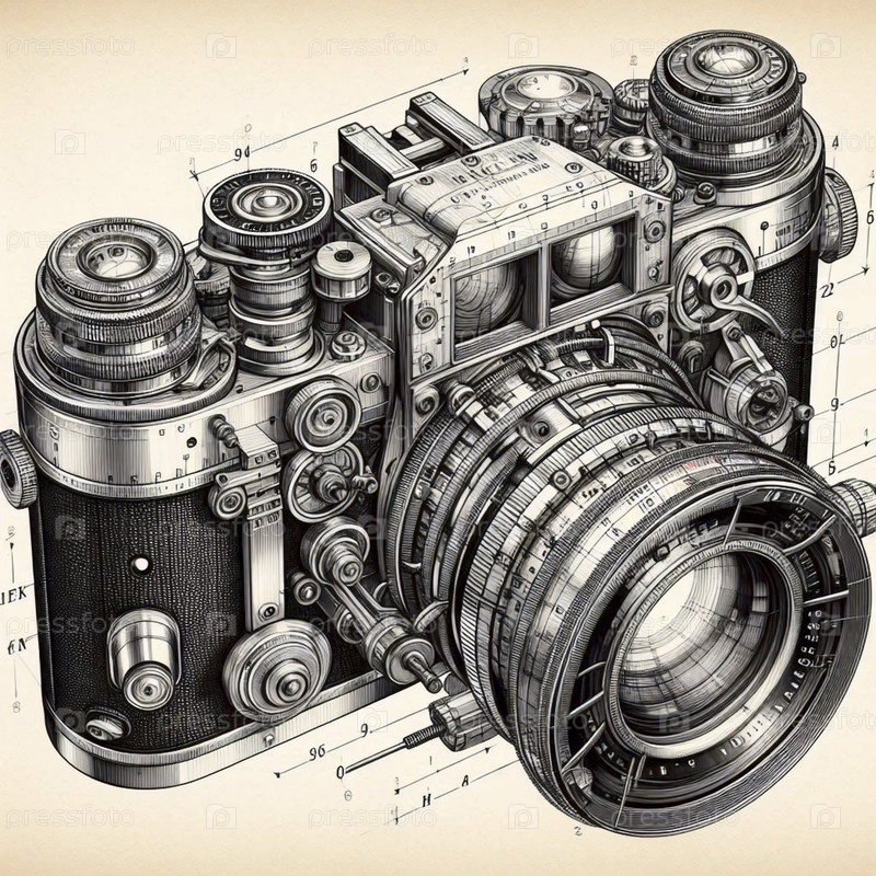 Vintage Камера чернила рисование художественная печать, Ai generated image