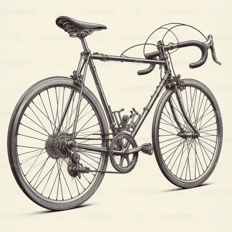 Классический велосипед чернила рисование художественная печать, Ai generated image
