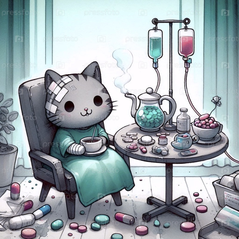 Темная сцена кофейной чайной вечеринки в больнице, Ai generated image