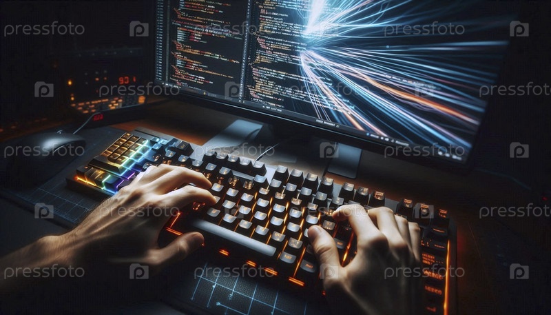 Опытные разработчики эффективно программируют на механической клавиатуре с помощью яркой, красочной макроклавиатуры Ai generated image