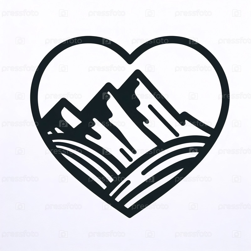 Сердце с горным силуэтом чернила рисунок художественная печать, A Ai generated image