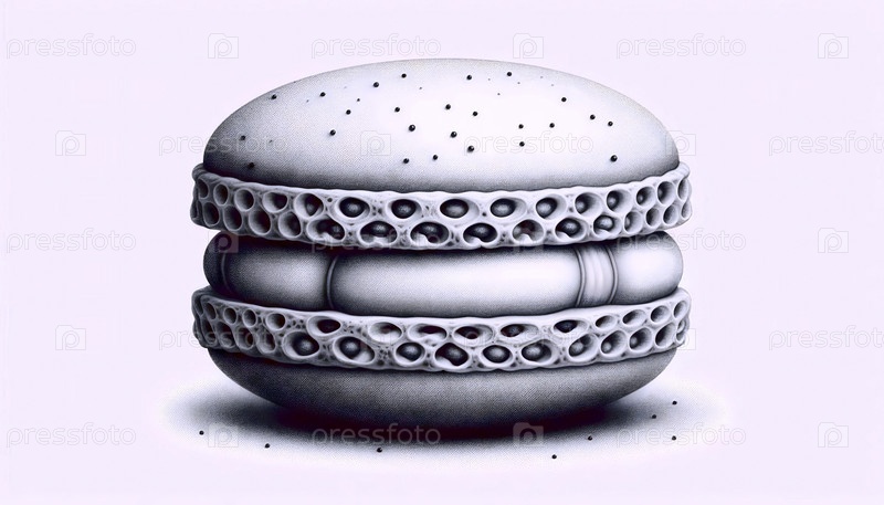 Detailed Macaron A ink drawing art print, Ai generated image Подробный чернильный рисунок макарон Арт-принт, созданный изображением