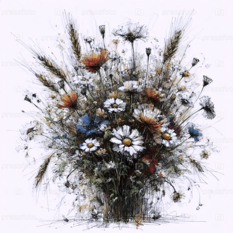 букет дикорастущих цветов чернила рисунок