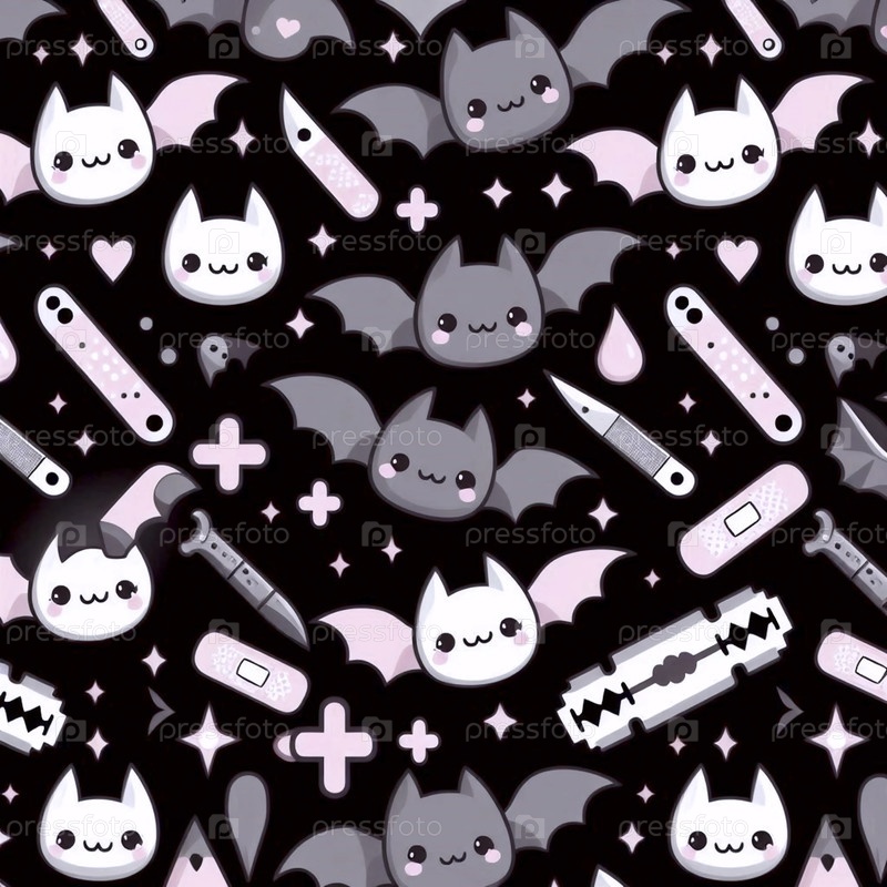 Готический шаблон кавайи из милых летучих мышей и крестов, Ai generated image